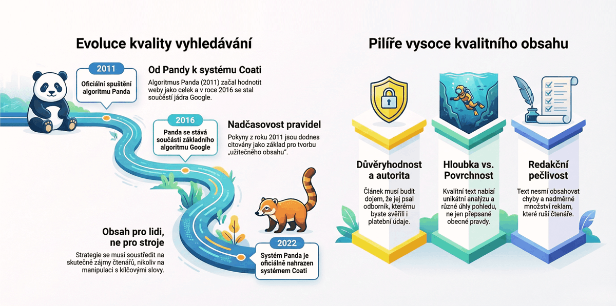 Připomeňme si článek „More guidance on building high-quality sites" [„Další pokyny pro budování vysoce kvalitních webů"] z května 2011, který napsal bývalý seniorní viceprezident a vedoucí týmu pro Vyhledávání Google Amit Singhal.
