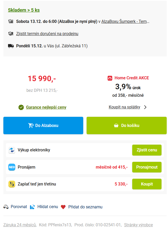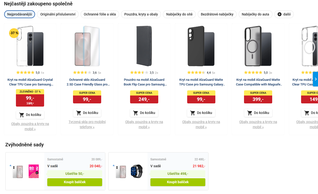 CTA tlačítka v detailu produktu na webu Alza.cz