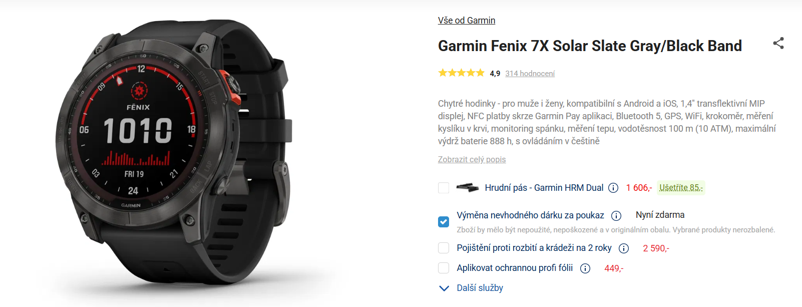 Produktový popisek chytrých hodinek Garmin na webu Alza.cz